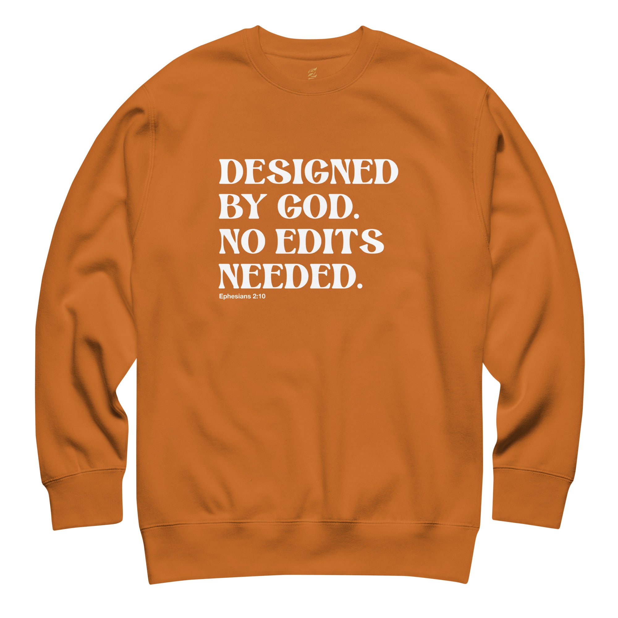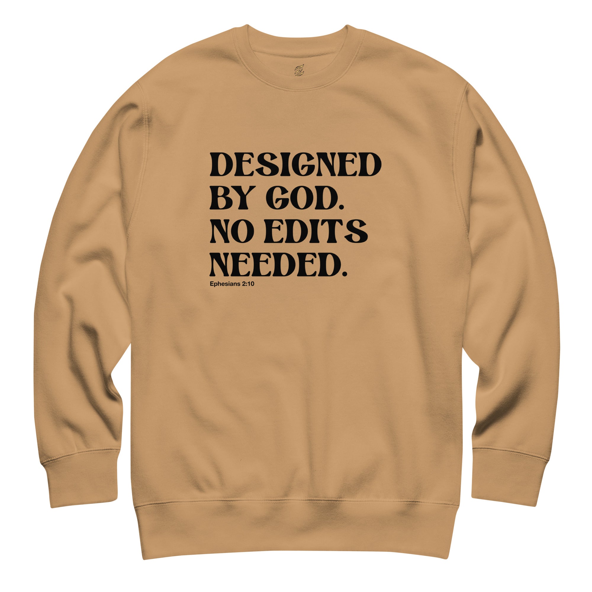 A soft, warm, premium-feel sweatshirt that boldly declares your God-given identity. “Designed by God – No Edits Needed” is a reminder that you are purposefully created and fully loved. This mid-weight crewneck is comfortable, durable, and perfect for Christian streetwear layering.
