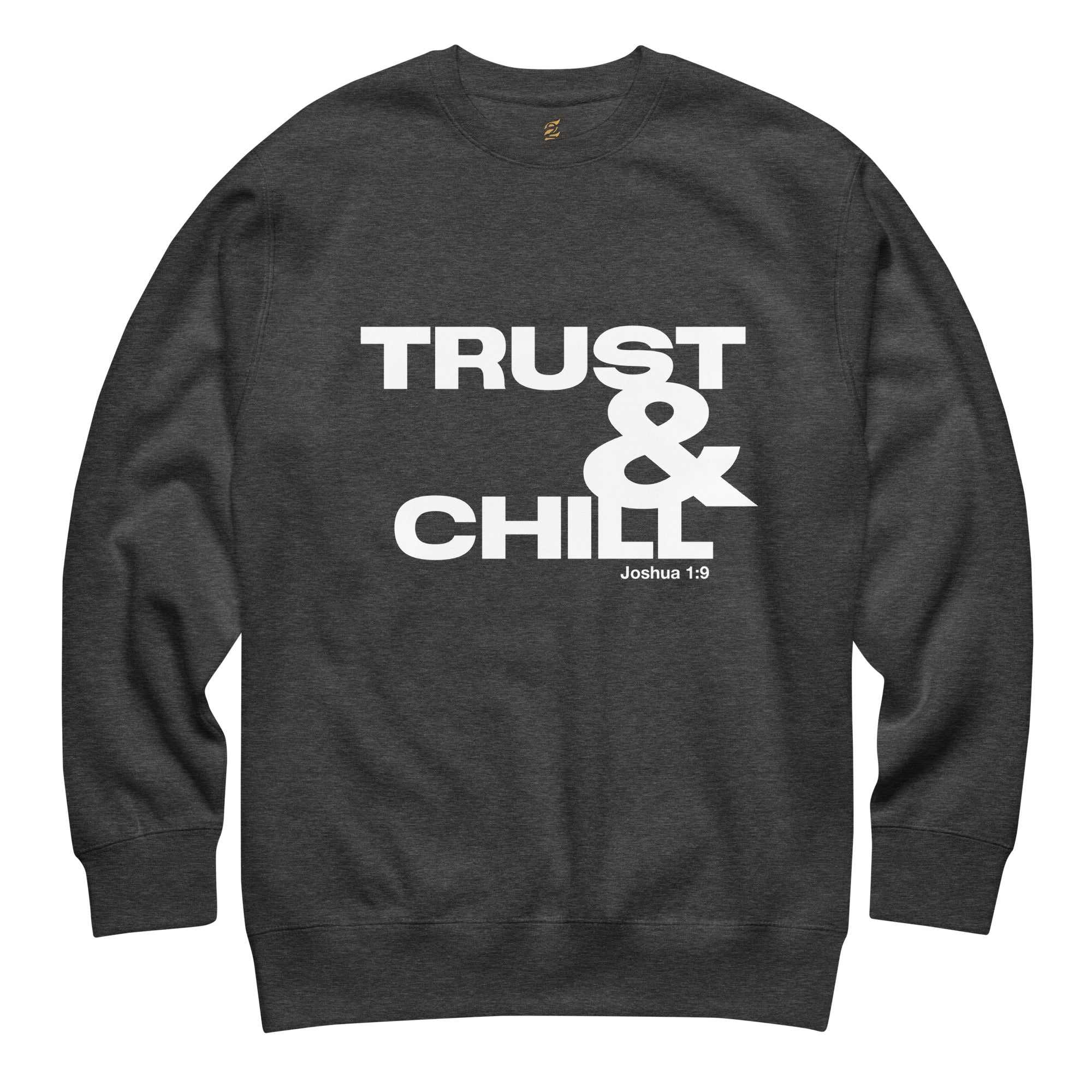 Rest in God and relax in style. The “Trust & Chill” crewneck sweatshirt delivers cozy comfort with a bold, faith-centered message. Soft on the inside, durable on the outside, and perfect for casual streetwear layering, this piece brings peace and confidence to any outfit.